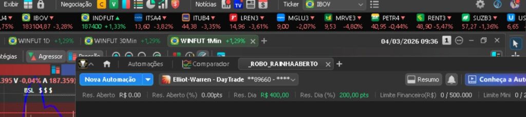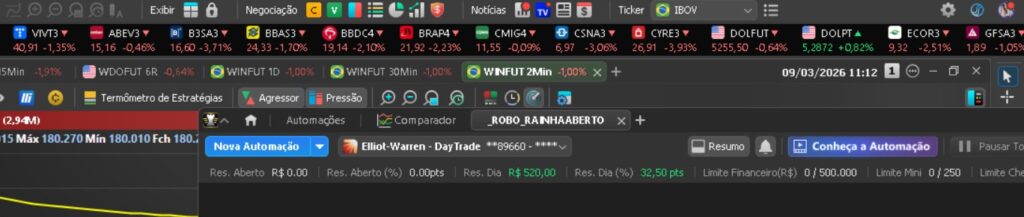O sistema opera conforme os parâmetros definidos, garantindo que o plano de trading seja seguido à risca mesmo em momentos de alta volatilidade.